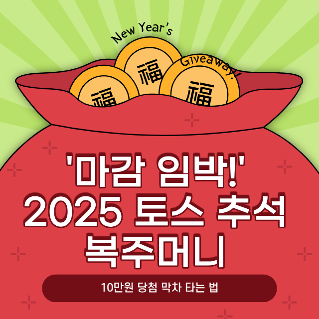 안녕하세요! "최대 10만 원 당첨!" 매년 추석마다 돌아와 쏠쏠한 용돈을 안겨주던 토스 복주머니 이벤트, 올해도 참여하고 계신가요? 9월 말부터 시작된 이벤트가 이제 막바지를 향해 달려가고 있습니다. 아직 참여하지 않으셨다면, 10만 원 당첨의 '막차'를 탈 수 있는 마지막 기회를 놓치지 마세요!