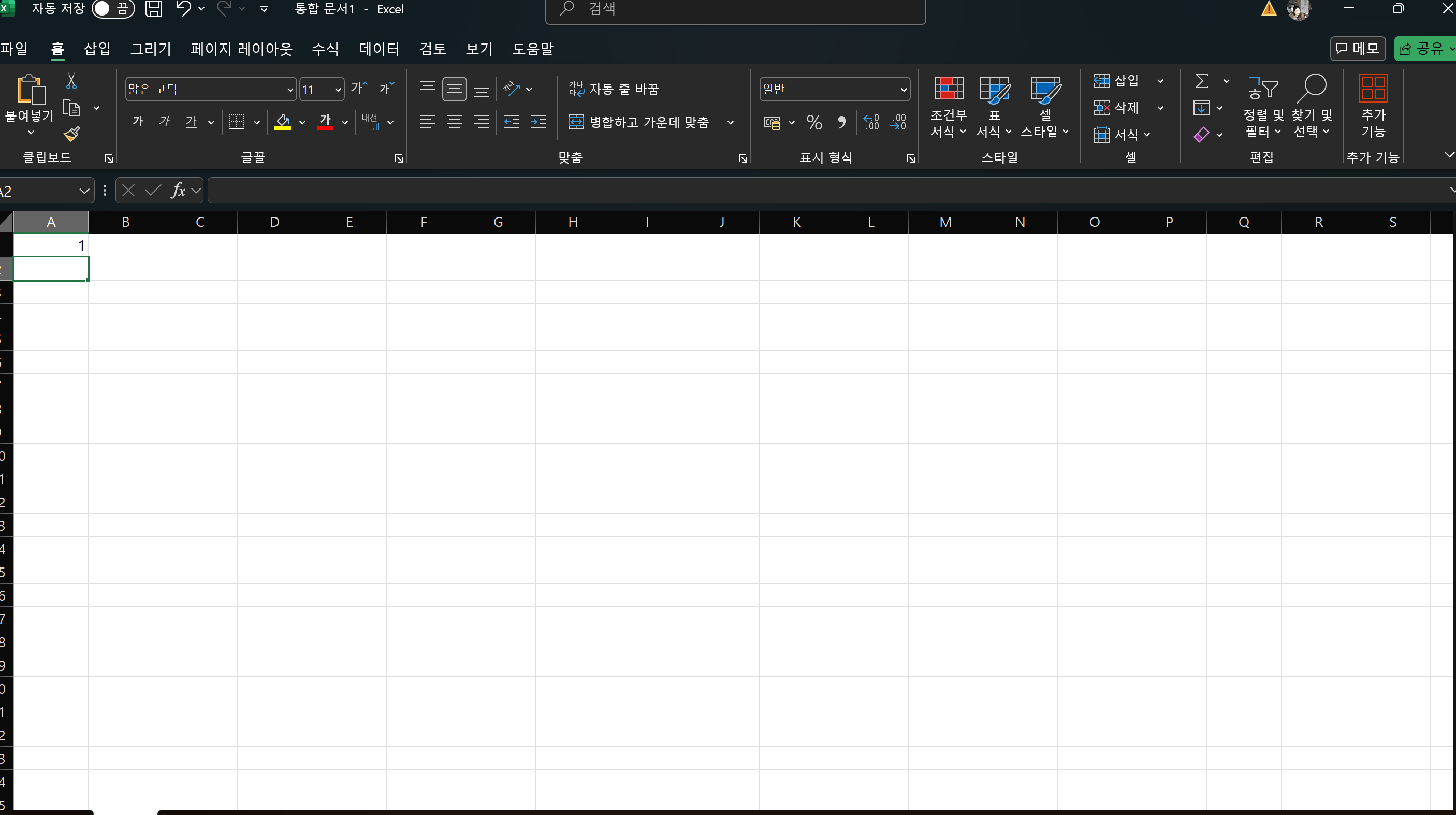 1. 먼저 비어 있는 셀에 숫자 1을 입력합니다.
