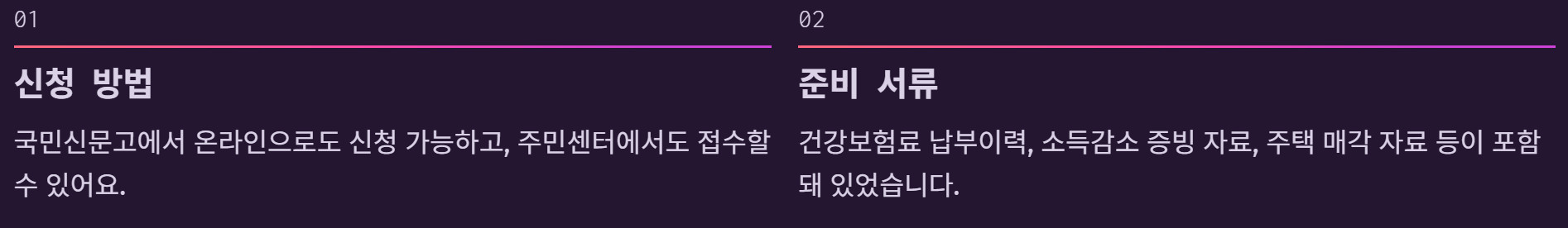 - 준비 서류: 소득 감소를 증명할 수 있는 자료 (퇴직증명서, 폐업사실증명원 등)