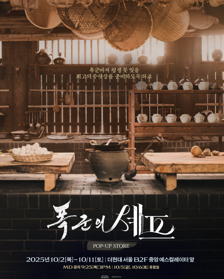 안녕하세요! '폭군셰프'가 떠나간 빈자리에 허전함을 느끼고 계셨던 팬 여러분, 모두 주목해주세요! 드라마의 여운을 달래줄 정말 반가운 소식! 바로 오늘, <폭군의 셰프> 공식 팝업스토어가 드디어 문을 엽니다! 🎉